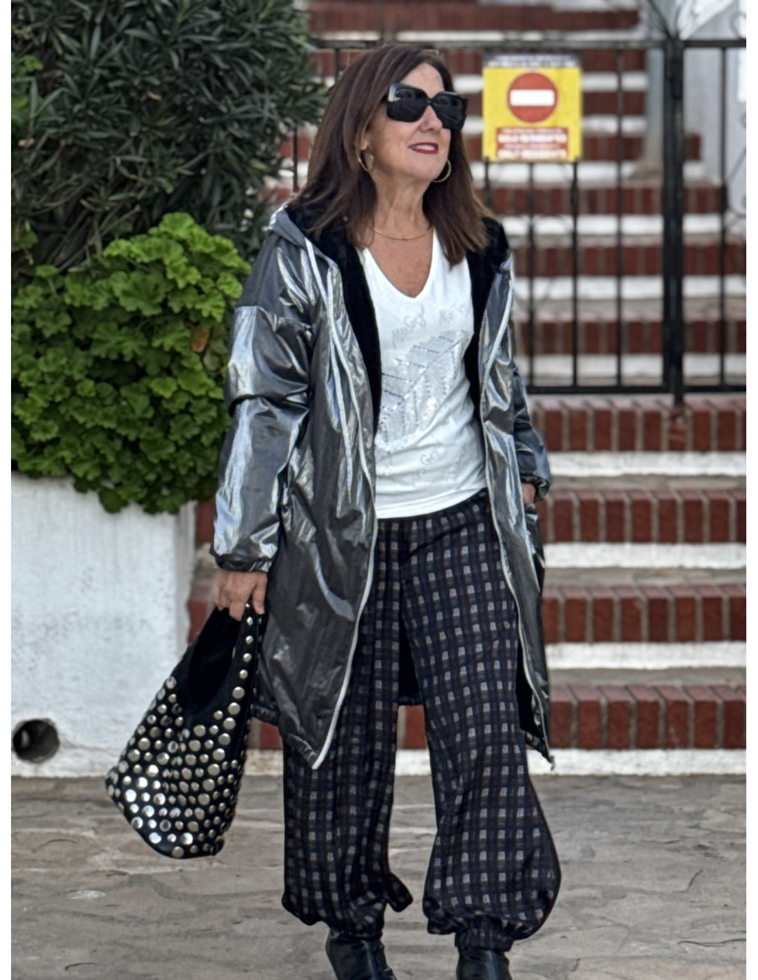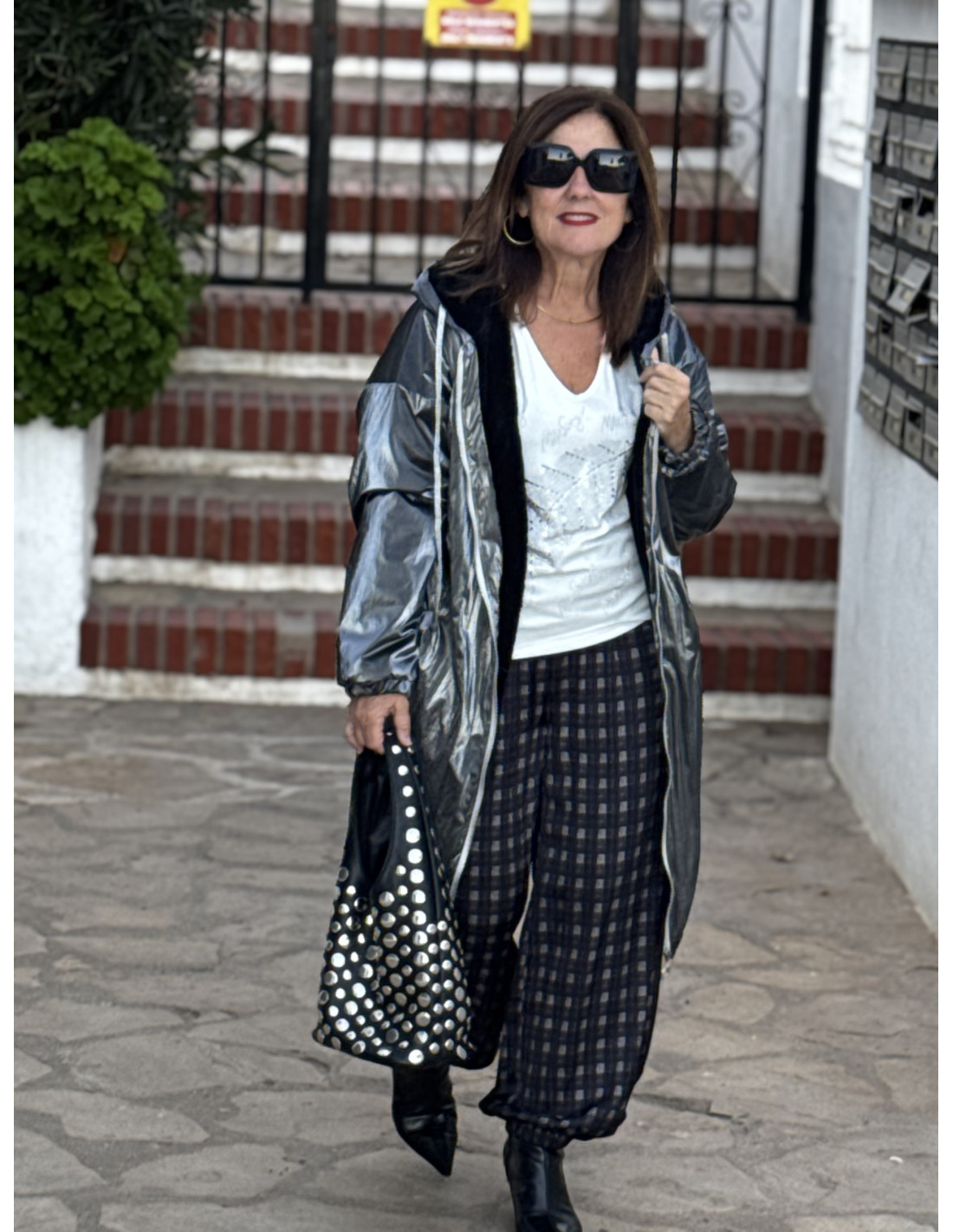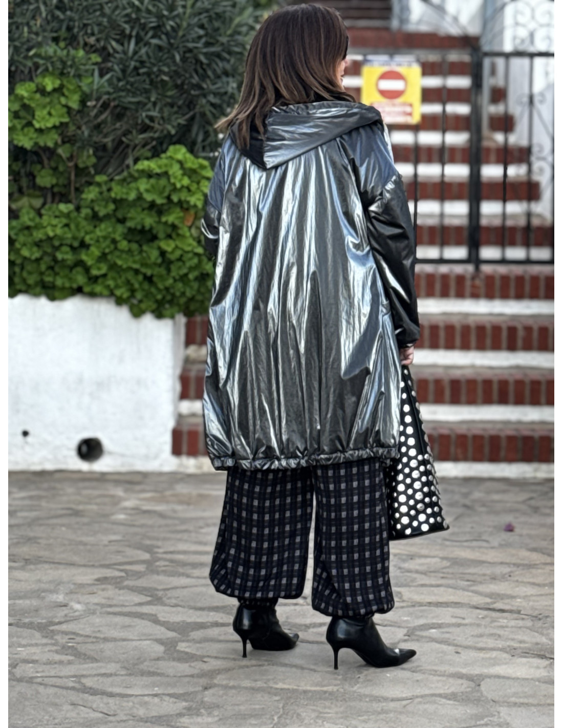 Abrigo metalizado en gris con borreguito interior