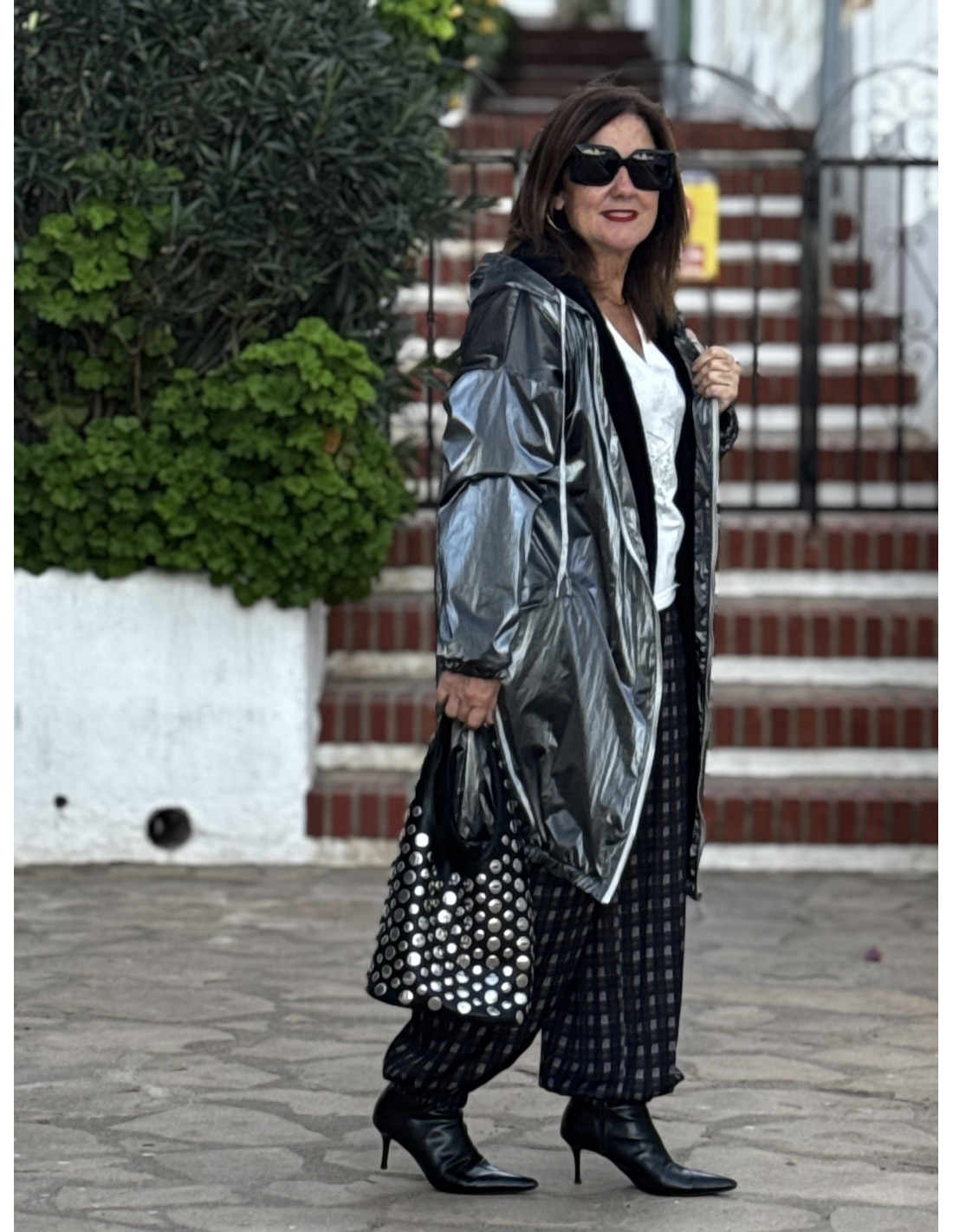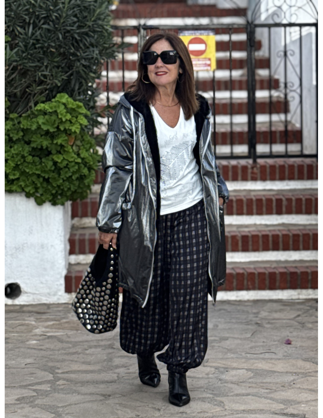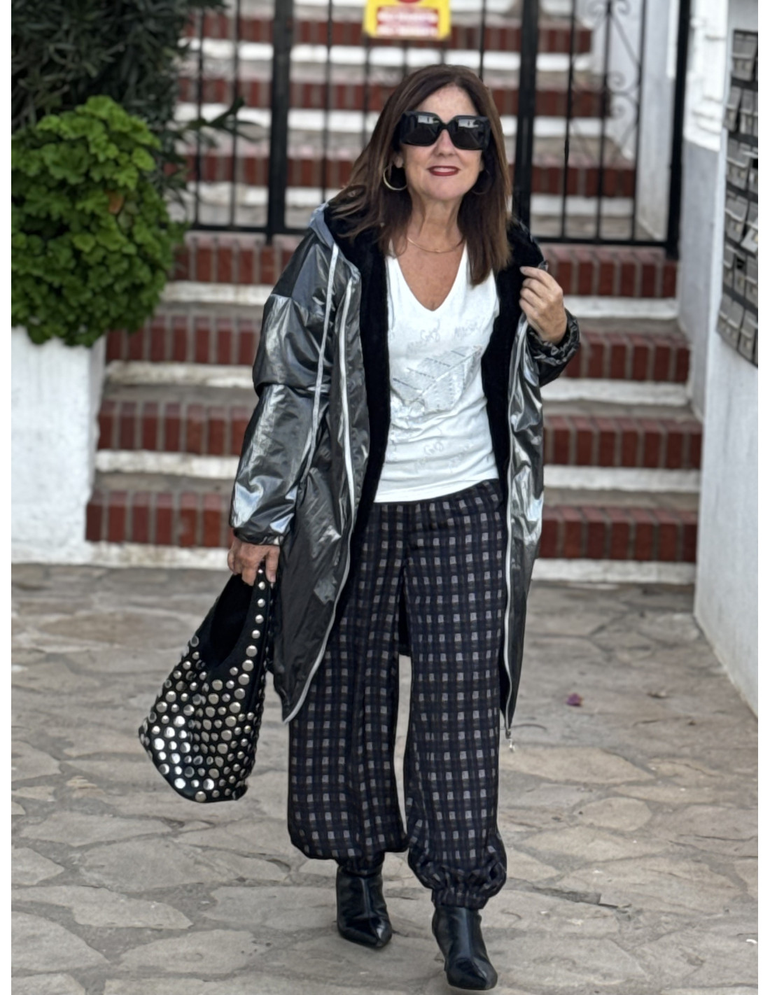 Abrigo metalizado en gris con borreguito interior