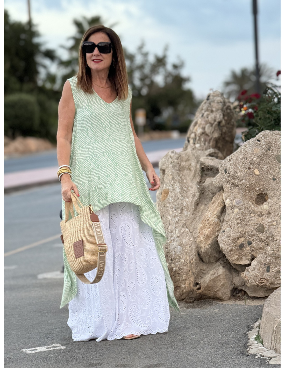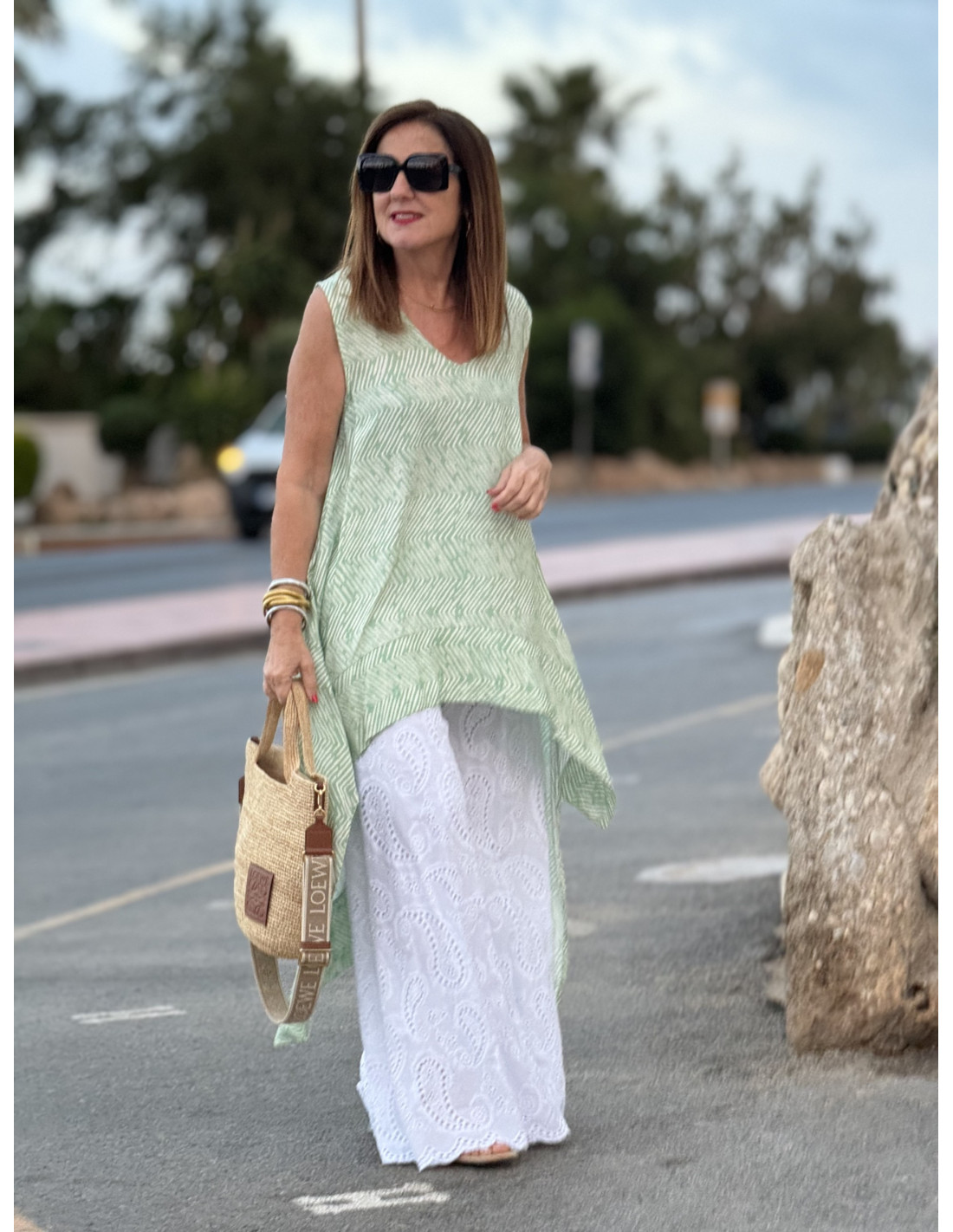 Este hermoso blusón presenta un diseño asimétrico que combina a la perfección con un estampado print cebra en tonos verde manzana claro y blanco. Con medidas de sisa a sisa de 51cm (contorno 102cm), ofrece un ajuste cómodo y favorecedor. Su longitud frontal de 67cm y trasera de 107cm le otorgan un toque moderno y versátil, ideal para complementar diversos conjuntos. Fabricado con 100% viscosa, este blusón garantiza una sensación suave y fresca en cada uso. ¡Añade un toque de estilo y elegancia a tu guardarropa con este encantador blusón! 🌸🦓