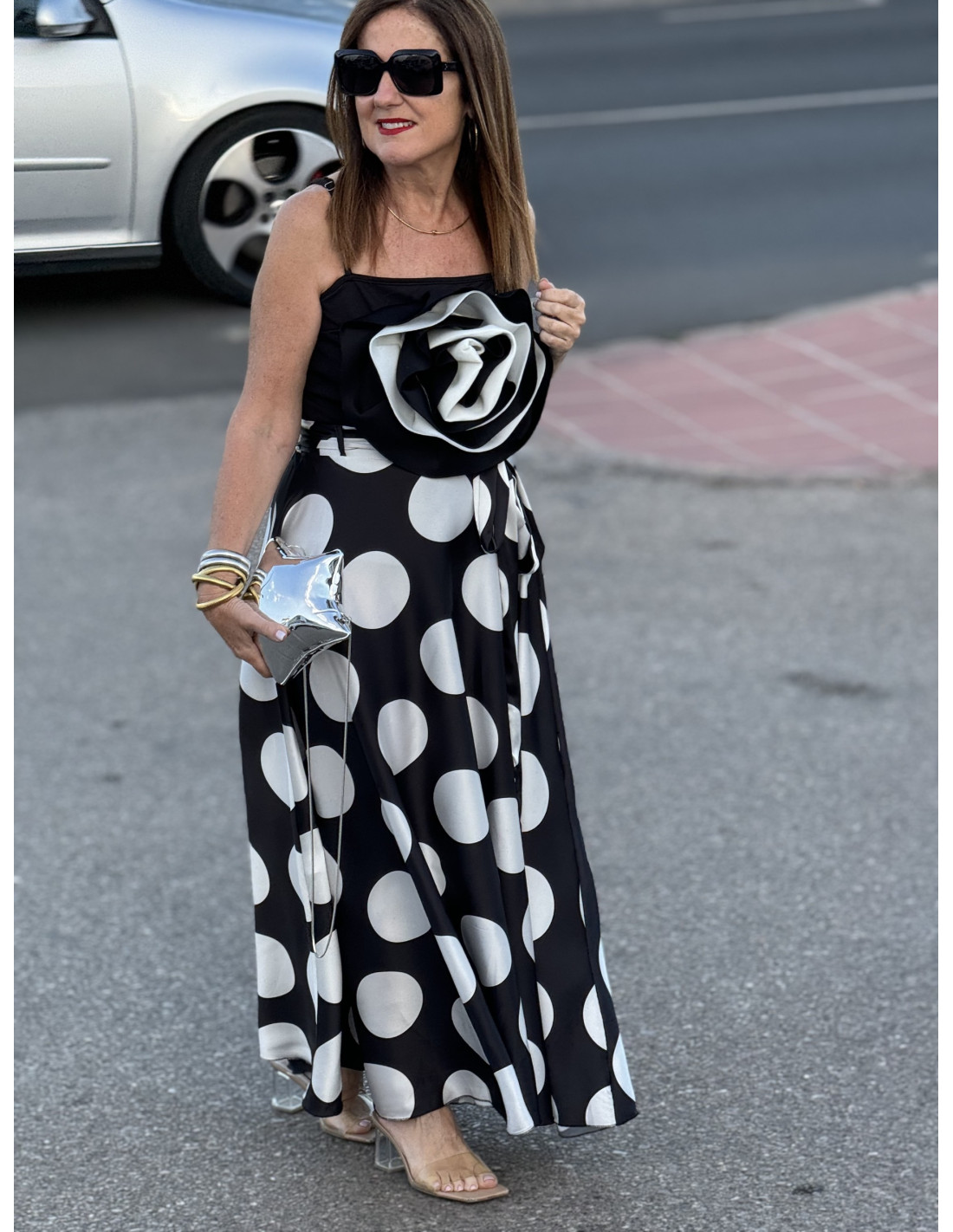 - Diseño elegante: El body presenta una espectacular flor central combinada en blanco y negro, que añade un toque de elegancia y distinción.