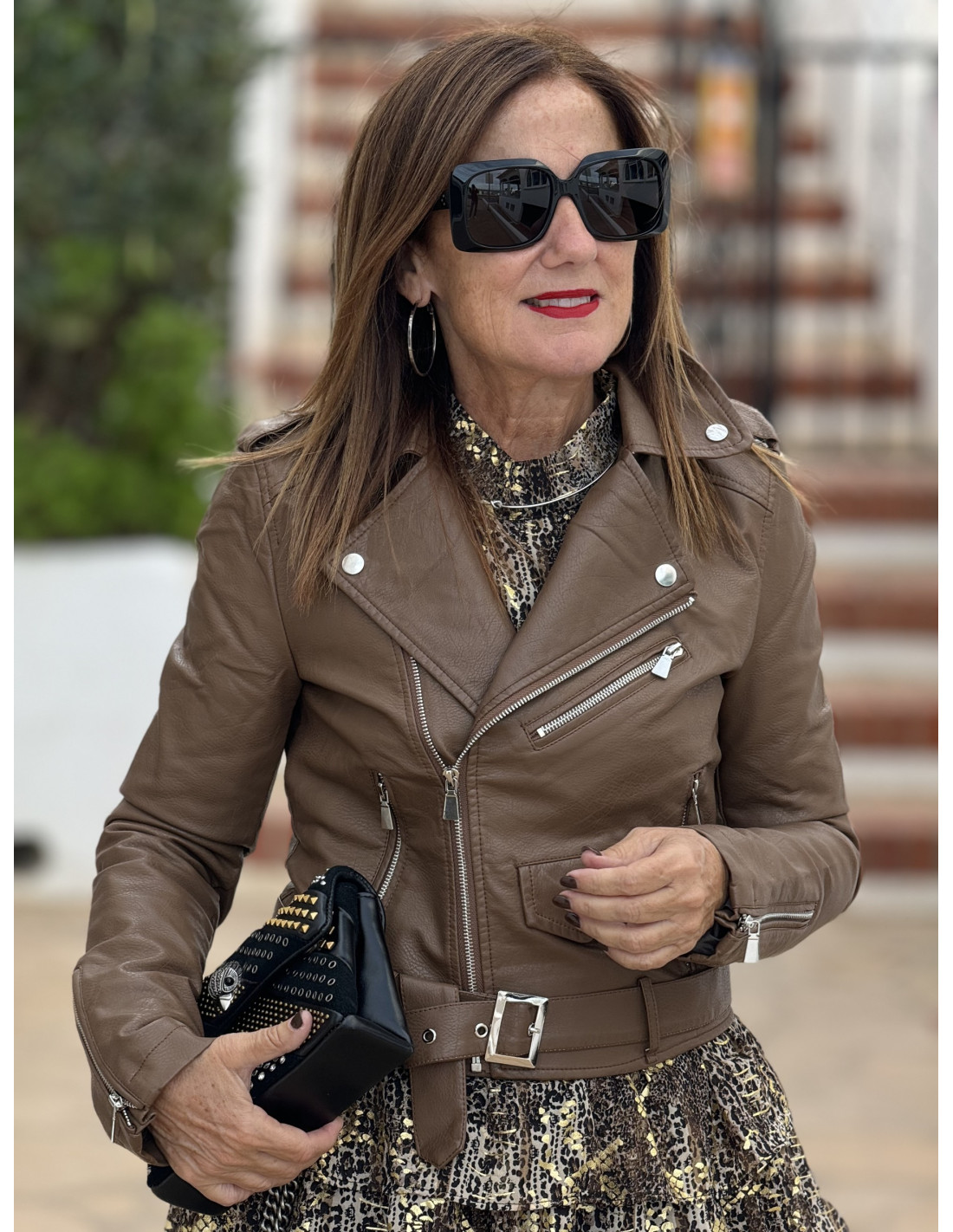 Esta chaqueta biker de piel sintética es una prenda clave para completar cualquier conjunto con estilo. Su diseño incluye un cierre de cremallera frontal, un cinturón ajustable que realza la silueta y un forro interior que aporta comodidad. Con su corte moderno y detalles en metal, es perfecta tanto para combinar con vestidos como con pantalones ajustados. Una prenda versátil que podrás llevar en diferentes ocasiones. 🌟