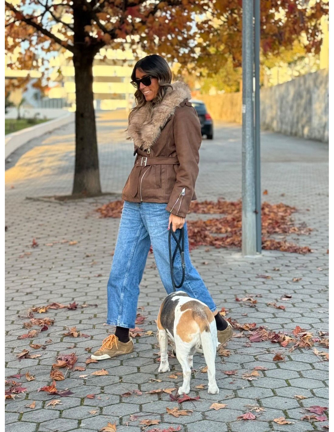 Chaqueta en un elegante tono chocolate, con un tacto efecto ante muy favorecedor. Incorpora un cuello de pelito sintético suave en color beis, totalmente desmontable, para que puedas adaptar el estilo según la ocasión. También cuenta con detalles de pelito suave en los puños y un interior cálido afelpado en beis, ideal para los días más fríos.