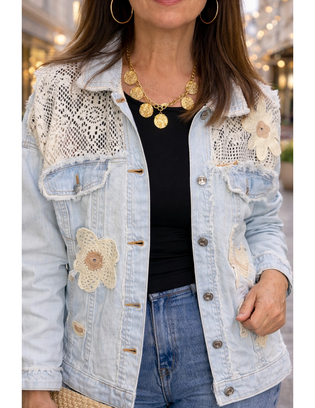 Cazadora Denim Crochet Garden