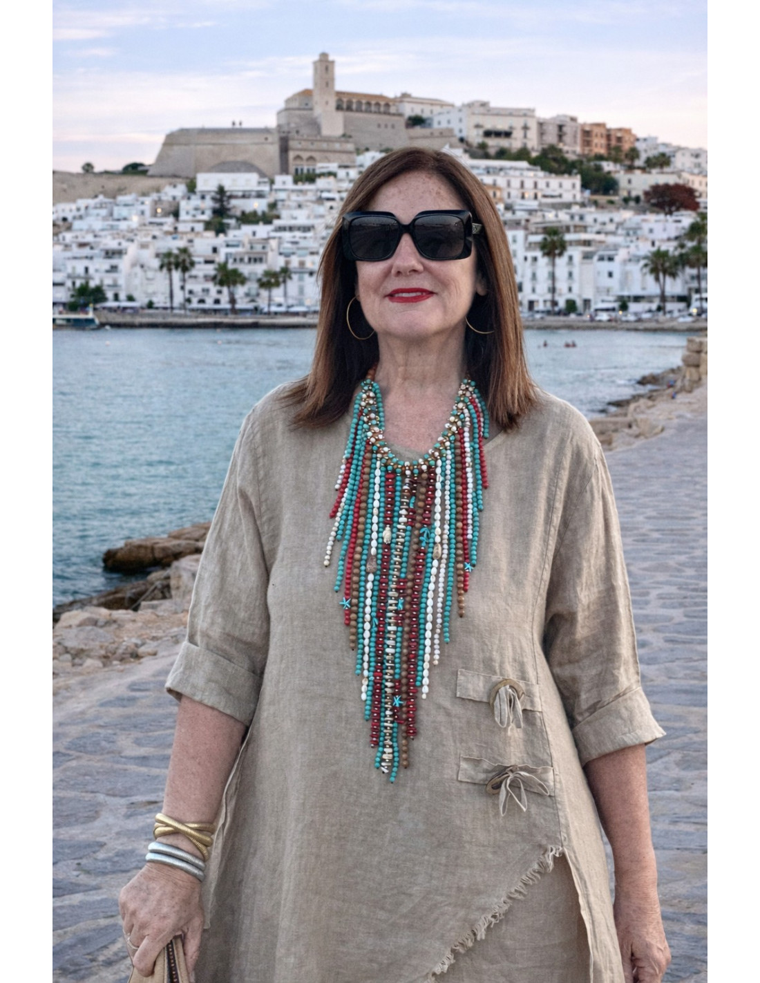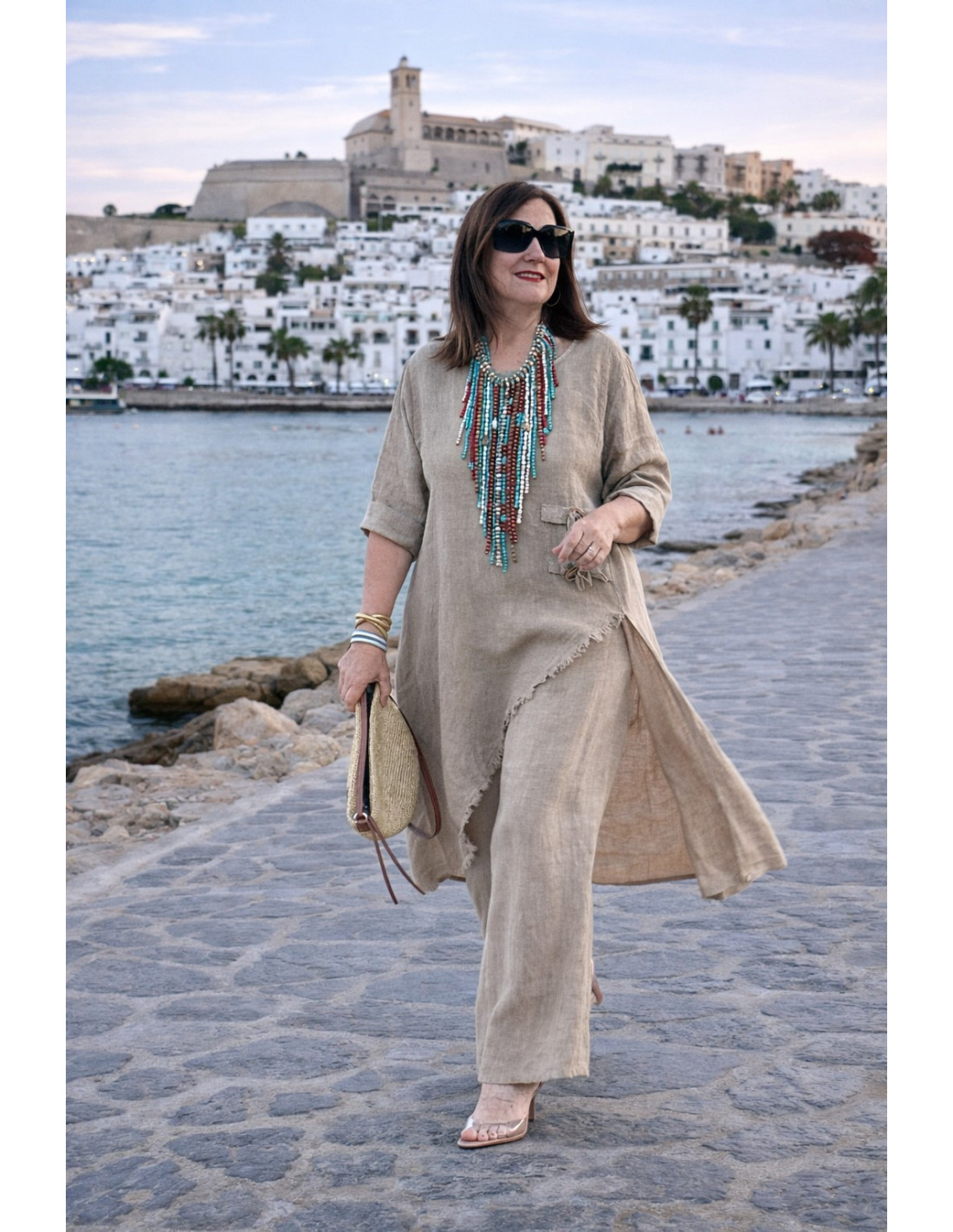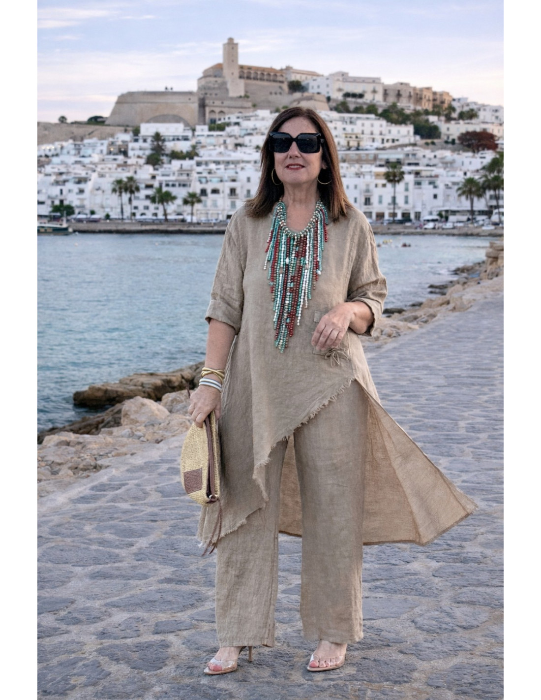 Conjunto lino tostado Asimétrico
