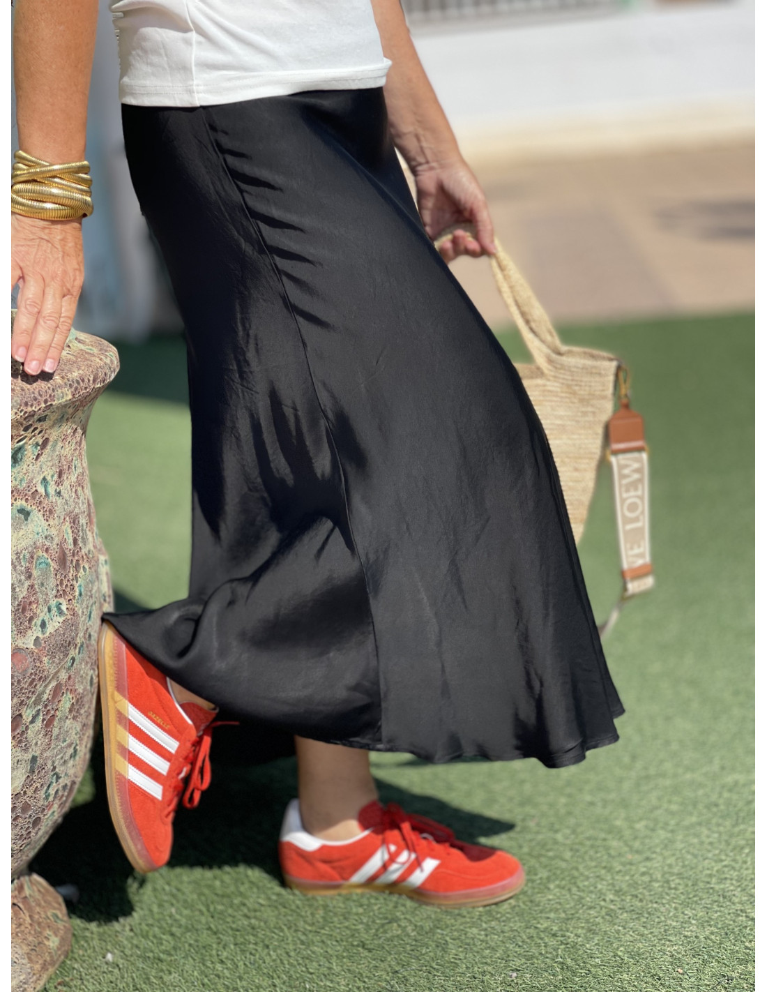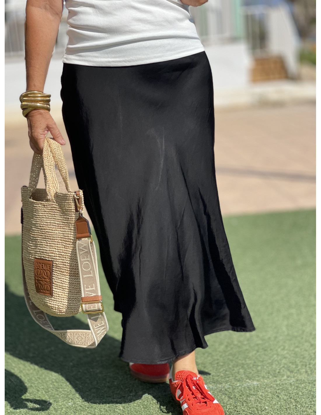 ✨ Brilla con nuestra falda en satén negra: elegancia y comodidad en una prenda. ¡Hazla tuya ahora y destaca en cualquier ocasión! 💃