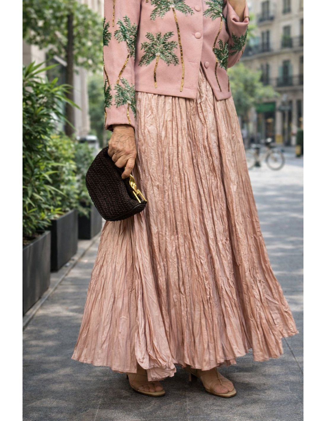 Falda rosa empolvado fluida con efecto arrugado