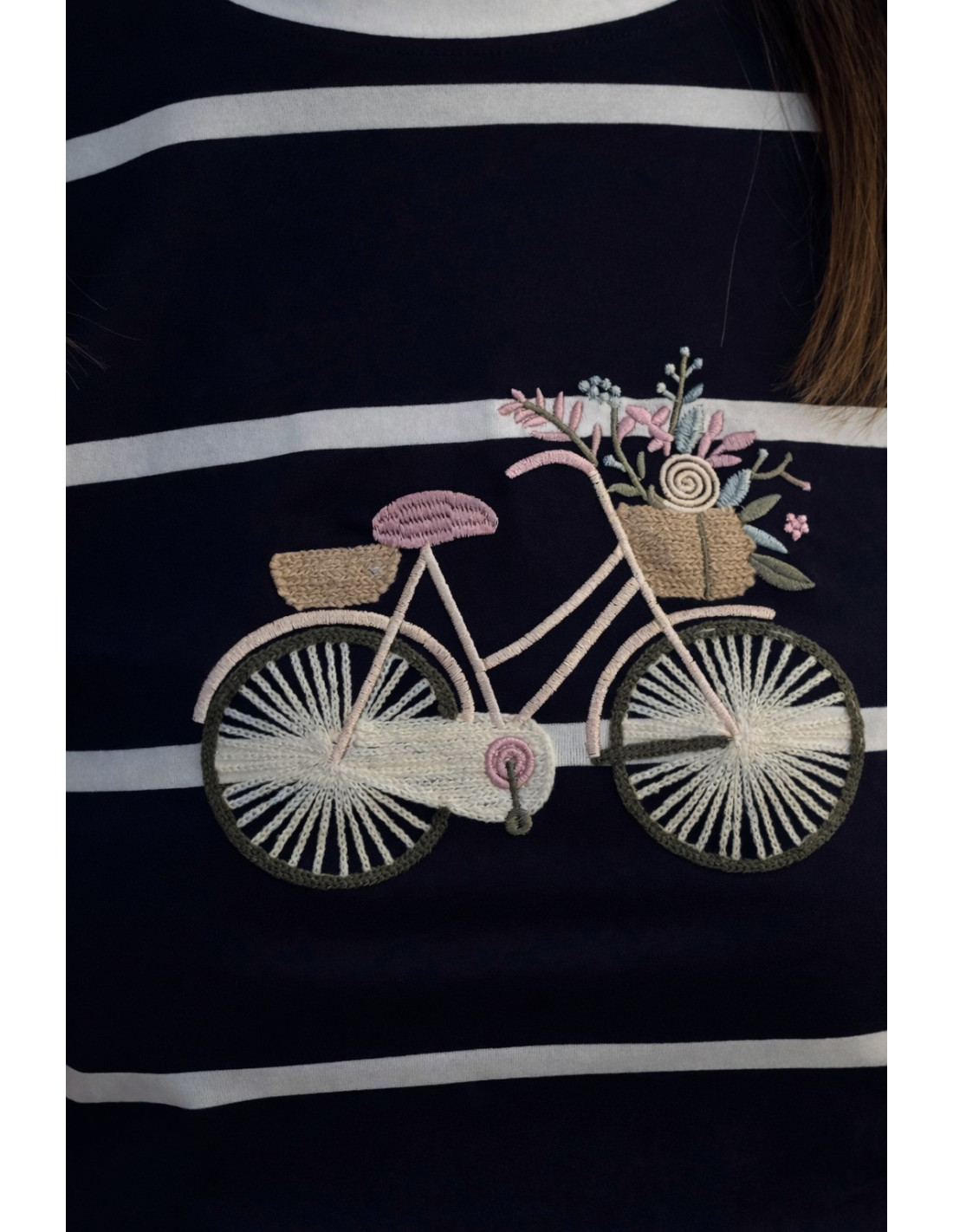 Camiseta navy con bicicleta bordada, cómoda y original.