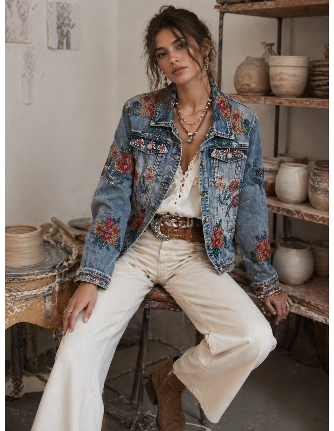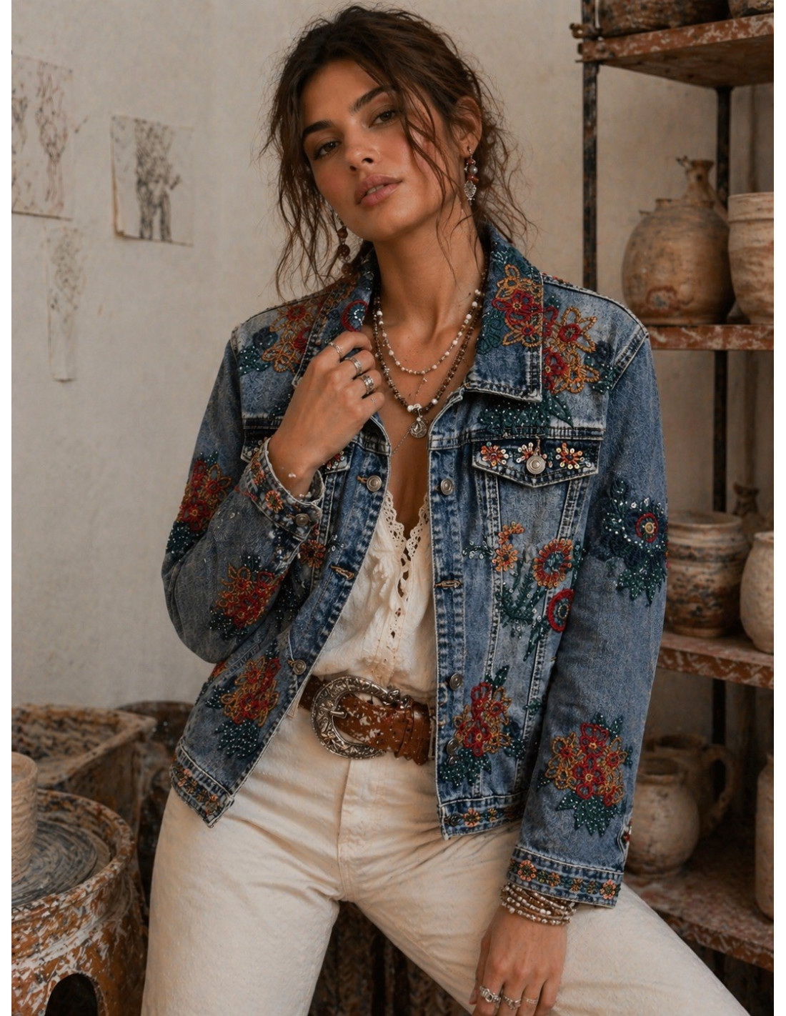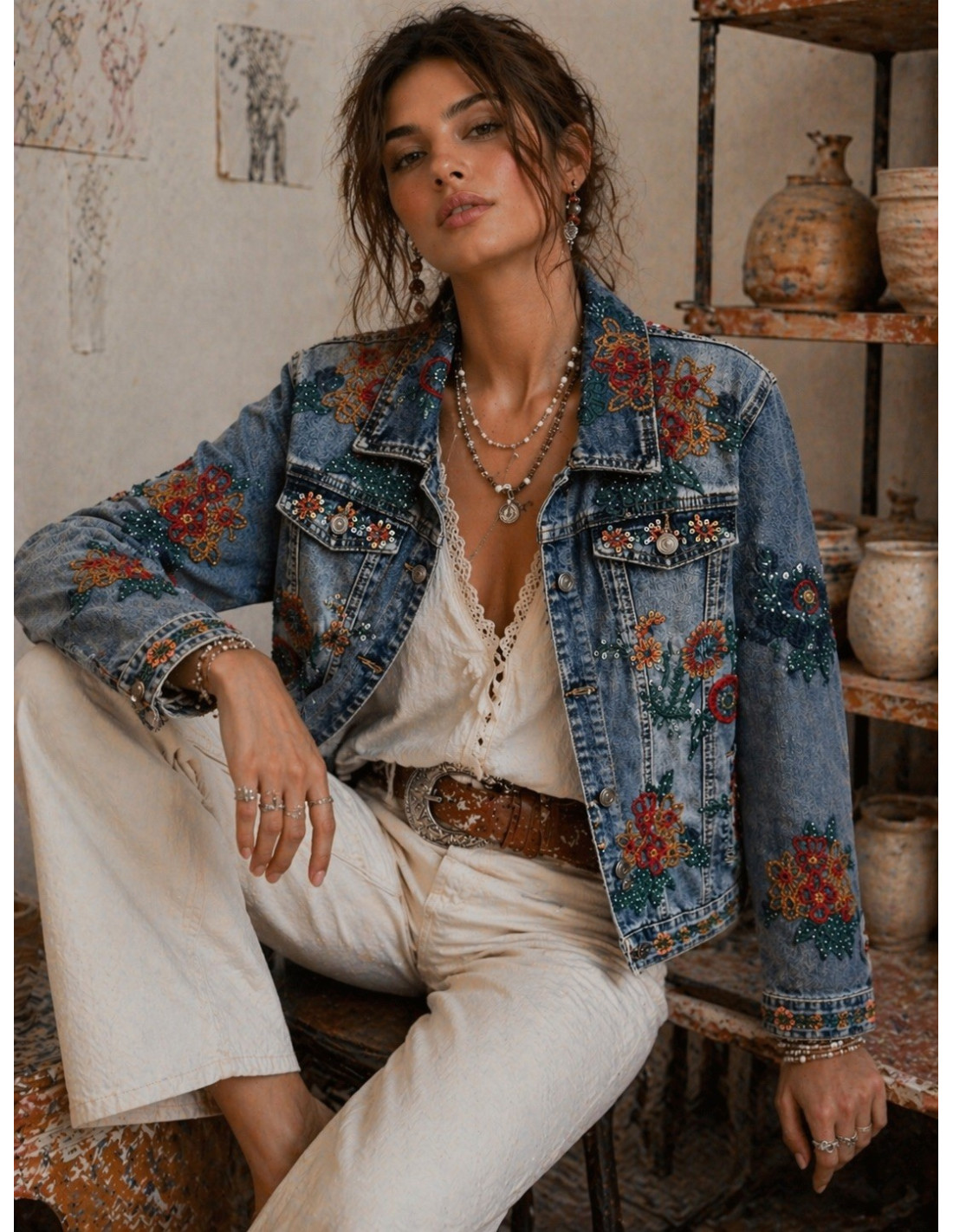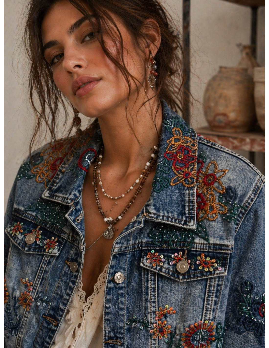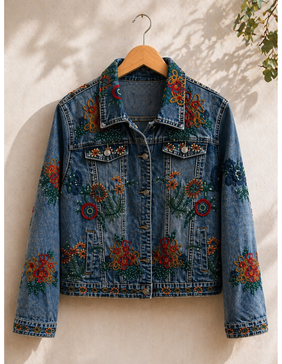 Cazadora vaquera bordada con lentejuelas