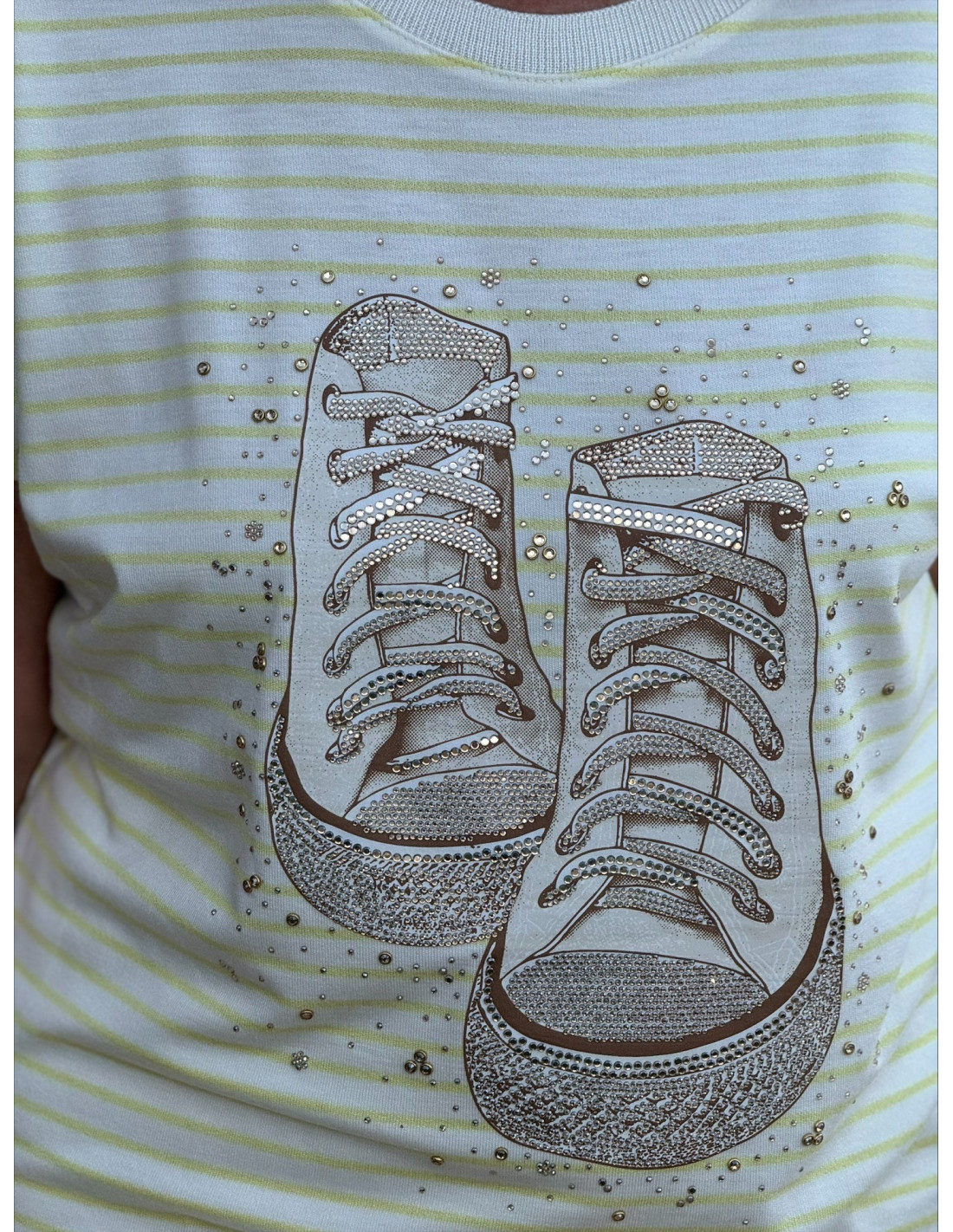 Camiseta navy en amarillo y blanco con deportivas en strass