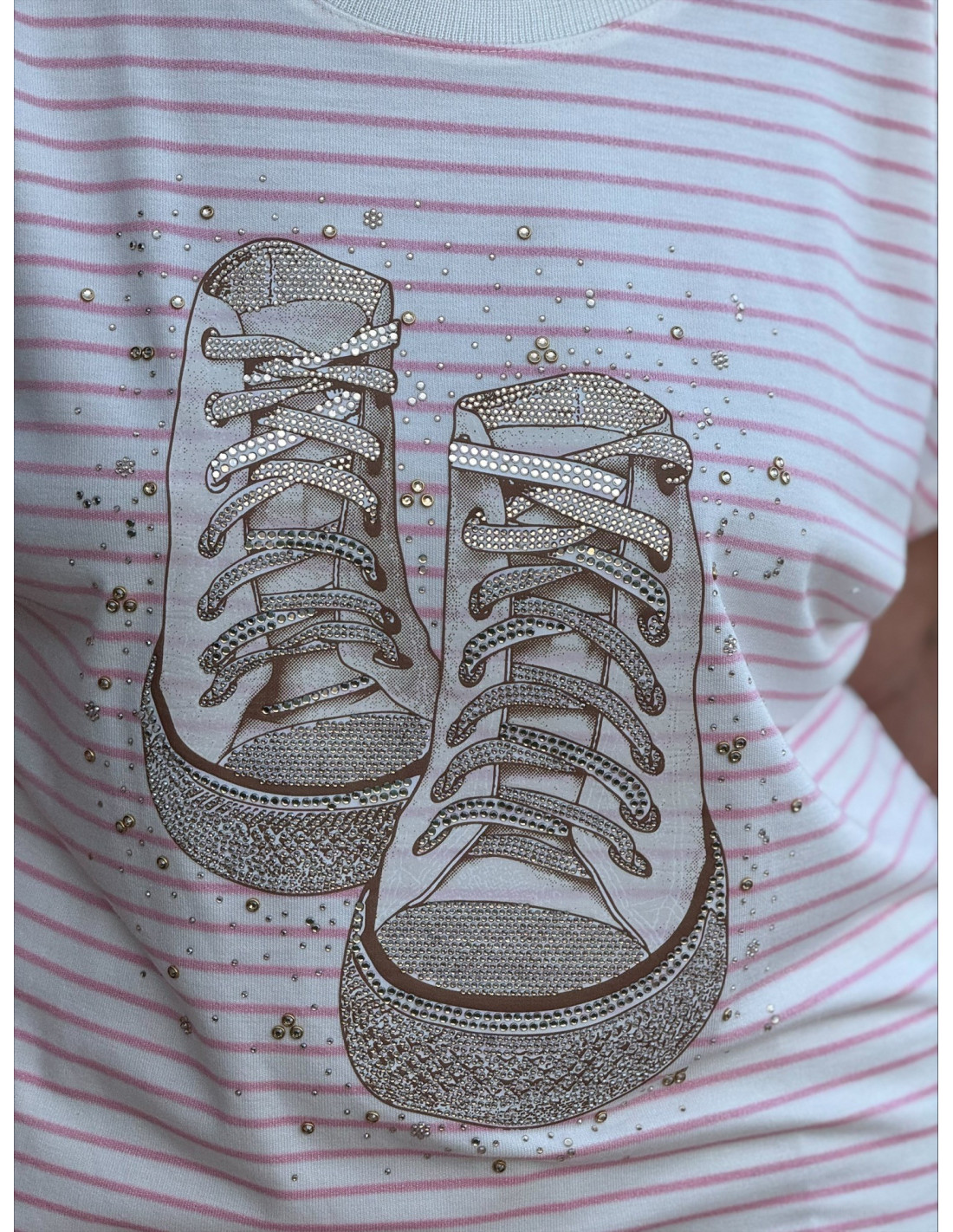 Camiseta navy de manga corta con original diseño frontal de deportivas decoradas con strass, que aporta un toque brillante y diferente a tus looks.
