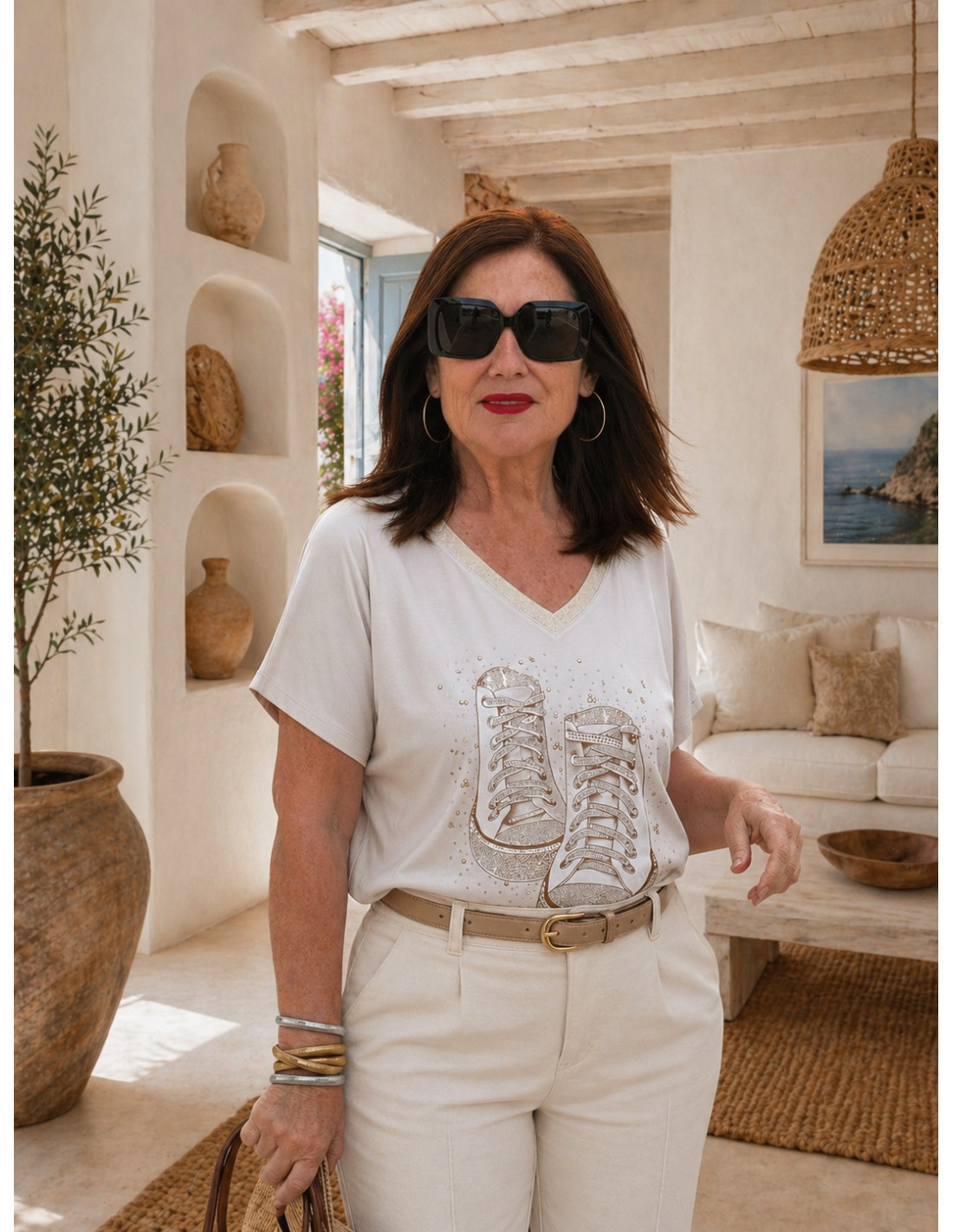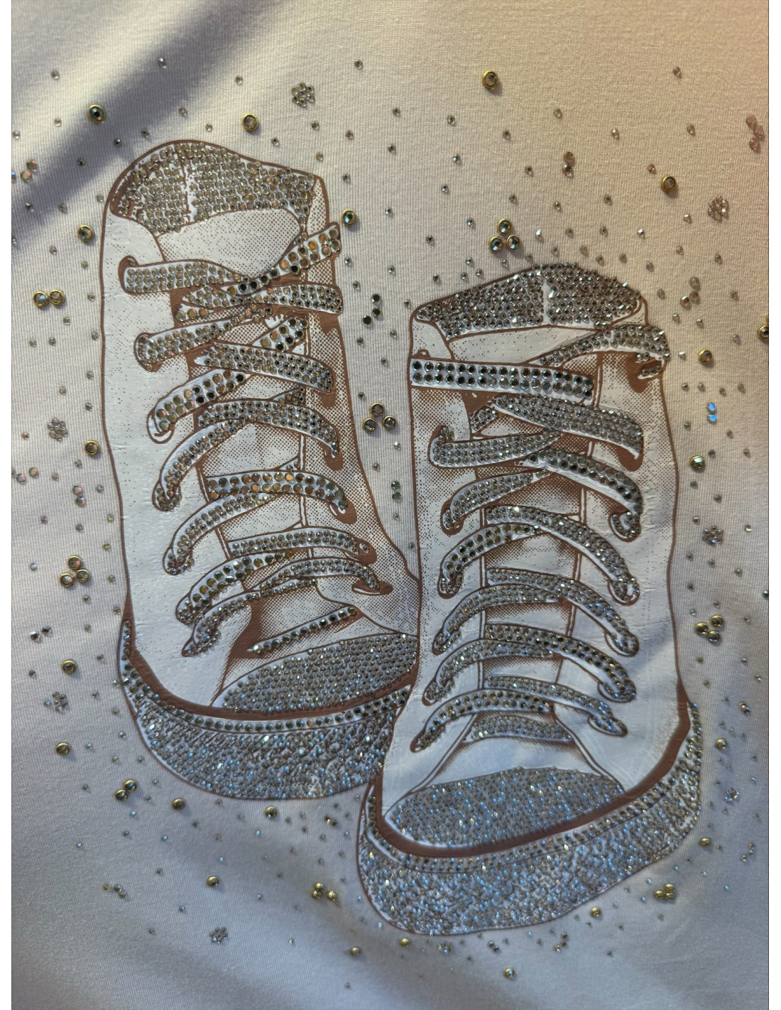 Camiseta cruda con deportivas en strass
