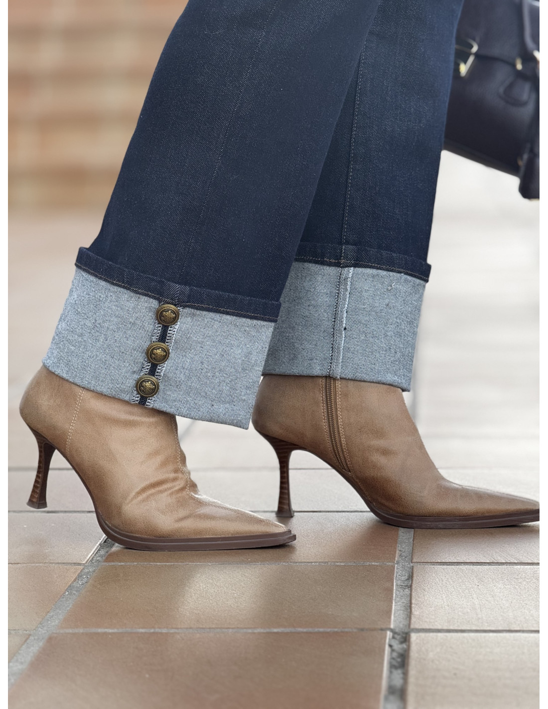 Pantalón vaquero recto con vuelta y botones laterales