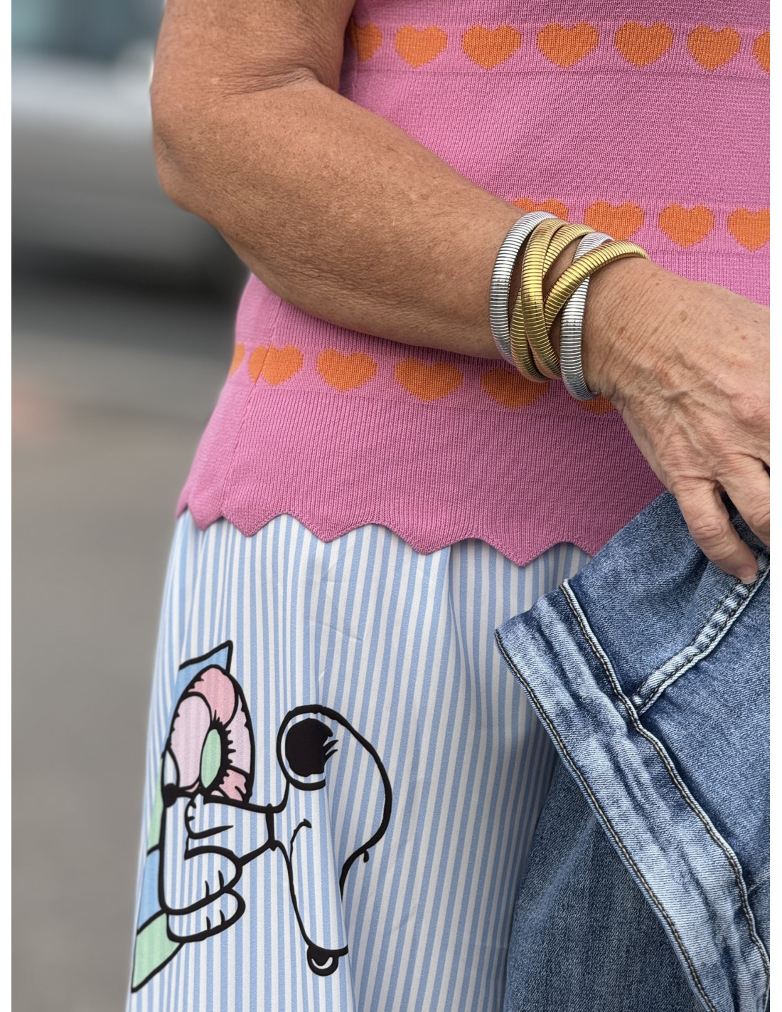 Este suéter de punto en rosa es una elección perfecta para añadir un toque de dulzura y estilo a tu armario. Presenta encantadoras franjas de corazones en tonos naranja que le confieren un encanto especial. El escote cuadrado y la terminación en onda añaden un toque de elegancia y favorecedor al diseño. Hecho con una mezcla de 85% acrílico y 15% poliéster, este suéter ofrece calidez, suavidad y durabilidad. Disponible en tallas S y M, con medidas que van desde 35cm de sisa a sisa y 56cm de largo para la talla S, hasta 39cm de sisa a sisa y 56cm de largo para la talla M. Combínalo con tus pantalones o faldas favoritas para un look versátil y lleno de estilo..