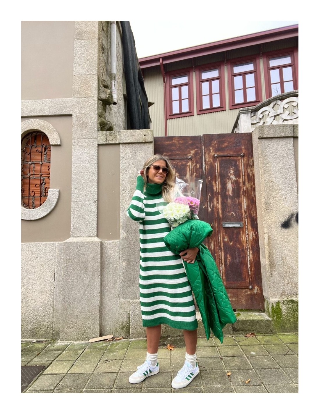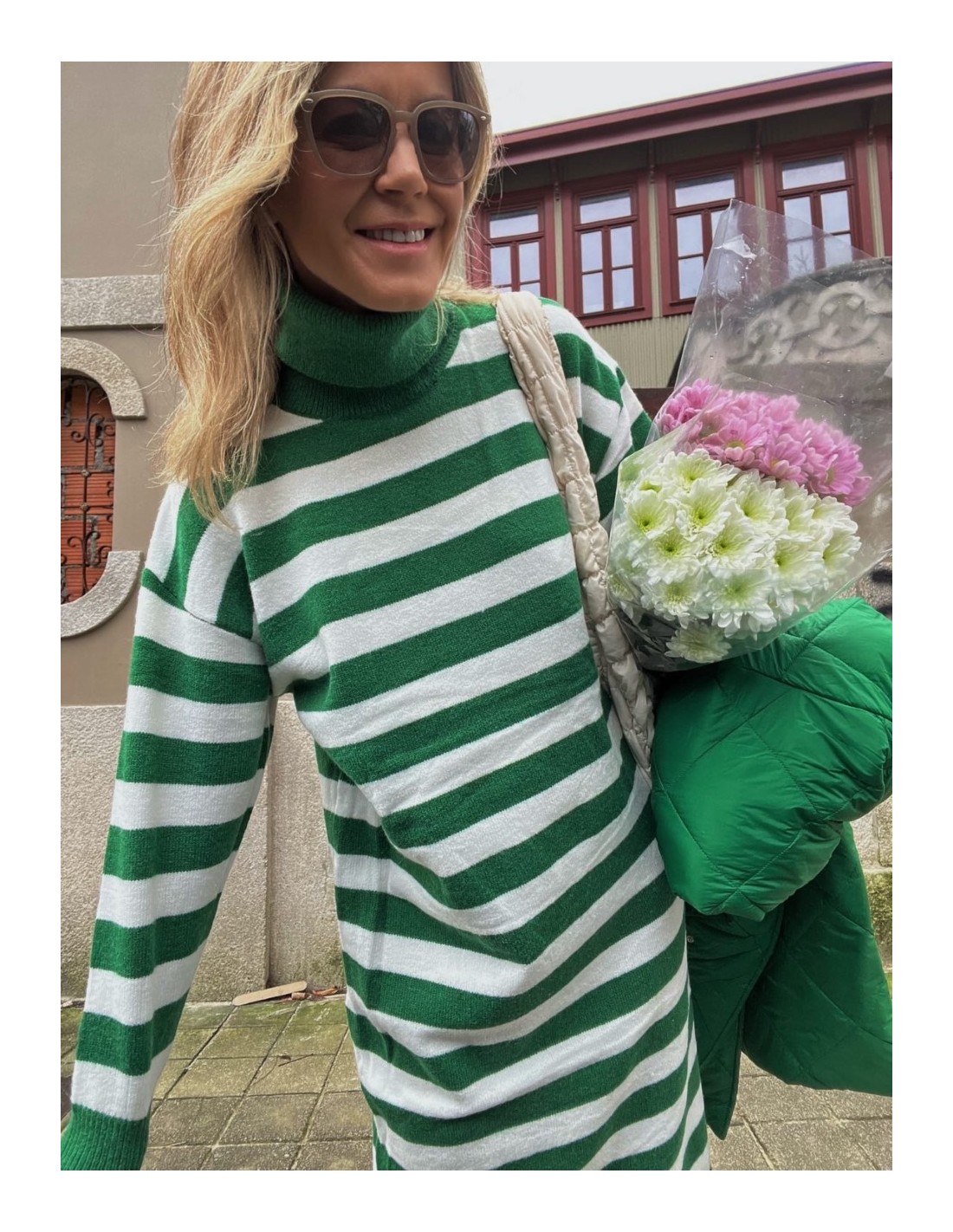Vestido franjas verdes y blancas
