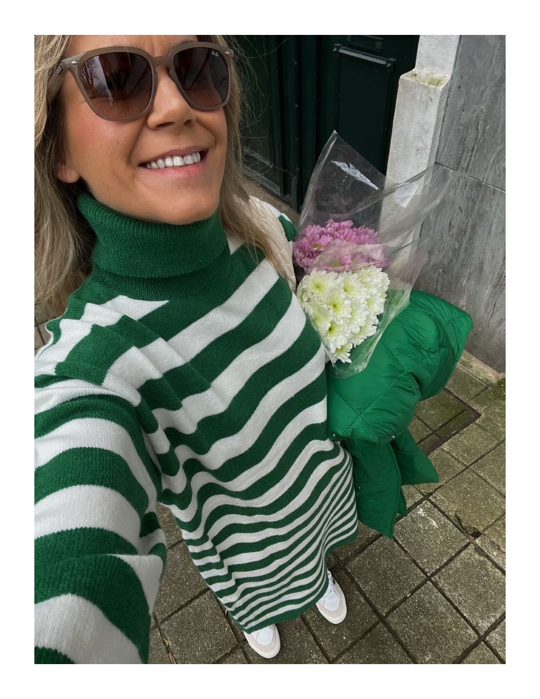 Vestido de cuello alto verde y blanco