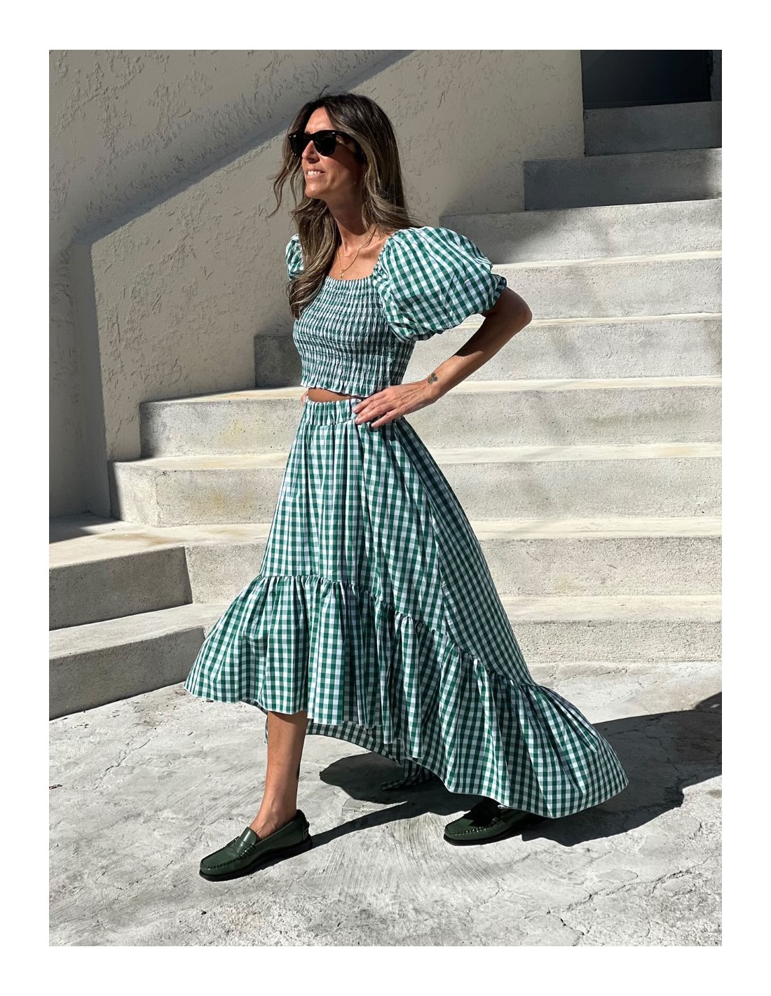 Top vichy cuerpo en nido de abeja que se adapta al cuerpo y mangas abullonadas.