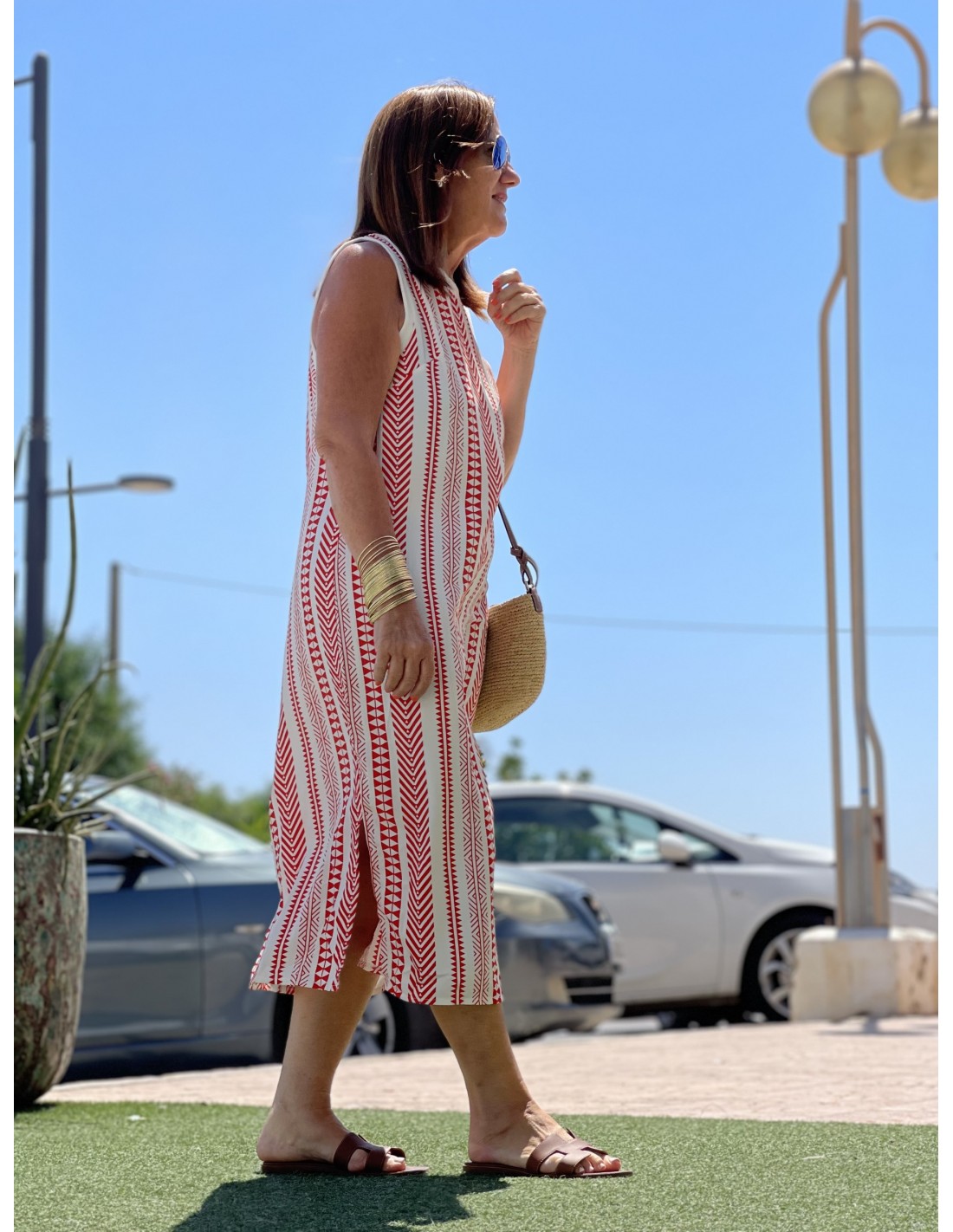 Vestido espiga blanco y rojo