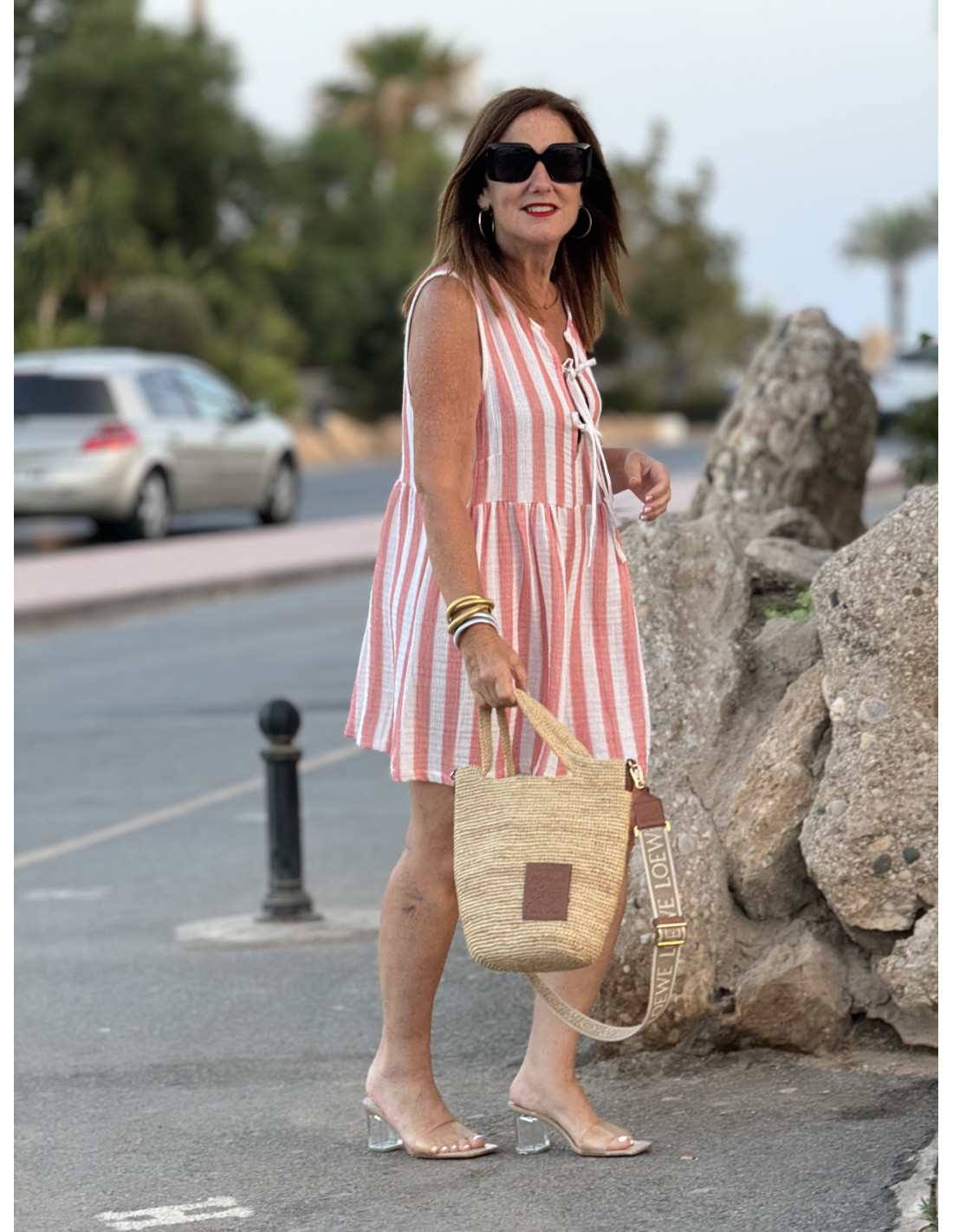 Vestido corto navy en rojo y crudo con tirante ancho y detalle anudado 🎀
